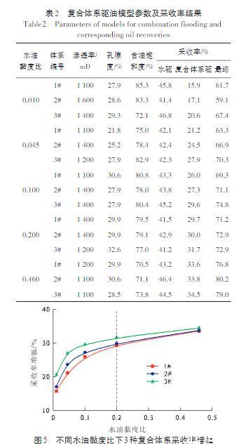 表2復(fù)合體系驅(qū)油模型參數(shù)及采收率結(jié)果