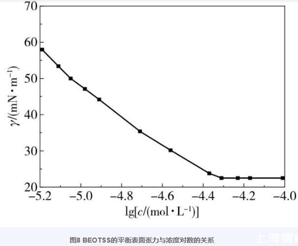 圖8 BEOTSS的平衡表面張力與濃度對(duì)數(shù)的關(guān)系