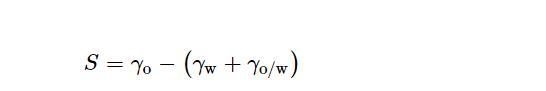 水成膜泡沫滅火劑具有泡沫窒息和液膜覆蓋的協(xié)同滅火效果,其中氟碳表面活性劑能否在燃油表面有效地鋪展,很大程度上影響了燃油火災(zāi)的撲滅效率。研究表明,鋪展系數(shù)是用于評(píng)價(jià)表面活性劑在油表面能否有效鋪展的重要參數(shù),由下式計(jì)算: