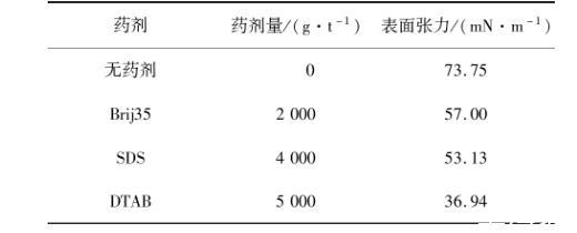 2.4藥劑對(duì)煤漿表面張力的影響