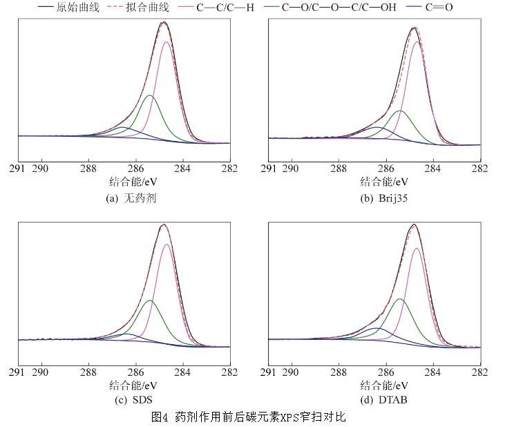 圖4藥劑作用前后碳元素XPS窄掃對(duì)比