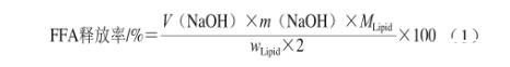 式中:V(NaOH)為消耗NaOH的體積/mL;m(NaOH)為NaOH濃度/(mol/L);wLipid為消化反應(yīng)中最初的油脂的質(zhì)量(194 mg);MLipid為中鏈甘油酸酯的摩爾質(zhì)量(500 g/mol)。