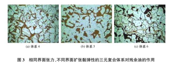 3.1.3界面張力、界面擴(kuò)張模量均不同的三元復(fù)合體系對(duì)殘余油的作用
