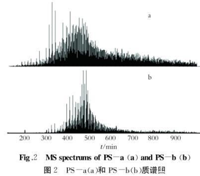 在確定的質(zhì)譜分析條件下,樣品PS-a和PS-b的質(zhì)譜圖如圖2所示。
