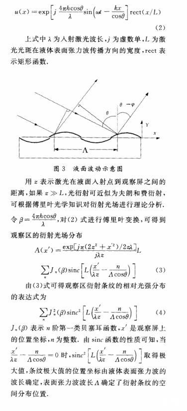 (2)理論上分析了表面張力波的光衍射效應(yīng),得到了衍射光場的解析表達(dá)式。根據(jù)衍射光場和表面張力波之間的關(guān)系,進(jìn)一步可求得液體的表面張力系數(shù)。