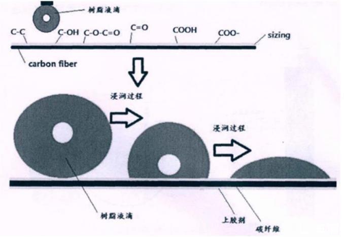 樹脂對碳纖維表面的浸潤性影響因素有很多。碳纖維表面的比表面積的大小,碳纖維表面的溝槽結構或纖維表面的活性基團的數(shù)量和種類,均對碳纖維的浸潤性有影響。