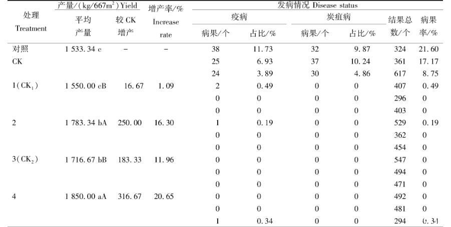 2.2對病蟲害的防治效果及產(chǎn)量的影響