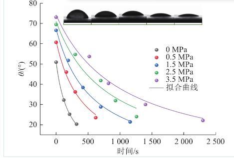圖5不同瓦斯壓力下煤與水之間動態(tài)接觸角