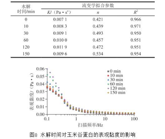 圖8水解時間對玉米谷蛋白的表觀黏度的影響