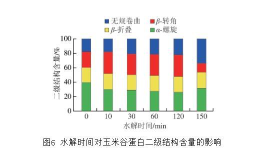 圖6水解時間對玉米谷蛋白二級結(jié)構(gòu)含量的影響