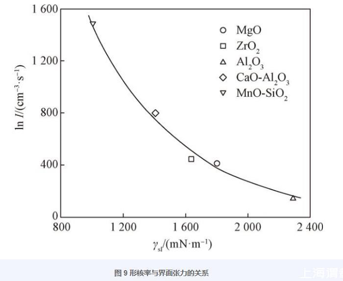 圖9形核率與界面張力的關(guān)系