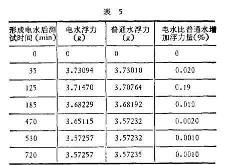 至于電水時(shí)間效應(yīng)的機(jī)理問題,特別是浮力變化大的范圍和緩慢變化范圍和水分子及水中雜質(zhì)儲能的時(shí)間長短有何關(guān)系,還需要從實(shí)驗(yàn)和理論上進(jìn)一步研究。