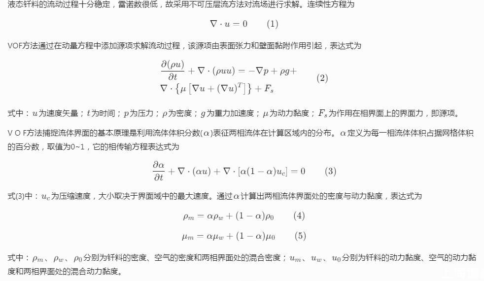 式中:rho_{m}、rho_{w}、rho_0分別為釬料的密度、空氣的密度和兩相界面處的混合密度;u_{m}、u_{w}、u_0分別為釬料的動(dòng)力黏度、空氣的動(dòng)力黏度和兩相界面處的混合動(dòng)力黏度。