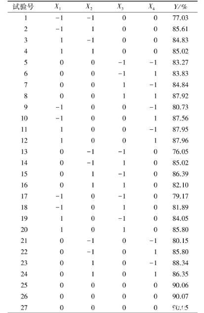 表1響應(yīng)面試驗(yàn)因素水平
