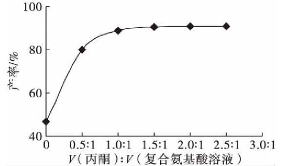 2.1.5丙酮與復(fù)合氨基酸溶液體積比對(duì)產(chǎn)率的影響