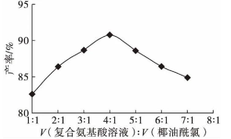 2.1.1復(fù)合氨基酸溶液與椰油酰氯體積比對(duì)產(chǎn)率的影響