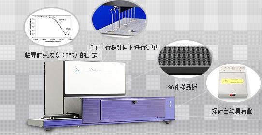 現(xiàn)有技術常采用達因筆對基材表面張力進行測試。市面上常用有30、32、34、36、38、40、42、44、46、48、50或以上十多種不同張力的達因筆(每種相差211^/111),對表面張力的檢測造成一定的局限性,測試結(jié)果準確度較低;而且達因筆有效使用周期較短,費用較高,僅能維持2-3個月,不利于長期生產(chǎn)實踐的需求。