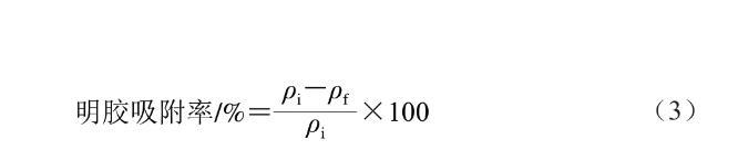 參考Tian Yan等的方法,并稍作改動。將1.3.2節(jié)新鮮制備的乳液在20 ℃下以12 000 r/min離心30 min后,將油滴和吸附在油滴上的蛋白質(zhì)從水相中分離出來。隨后,用注射器抽取離心管底部的溶液,并用0.22 μm濾膜過濾。明膠吸附率按式(3)計算: