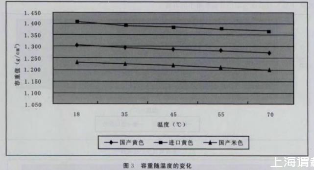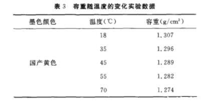 4)按以上步驟分別測(cè)量18~70℃的容重(見(jiàn)表3)。