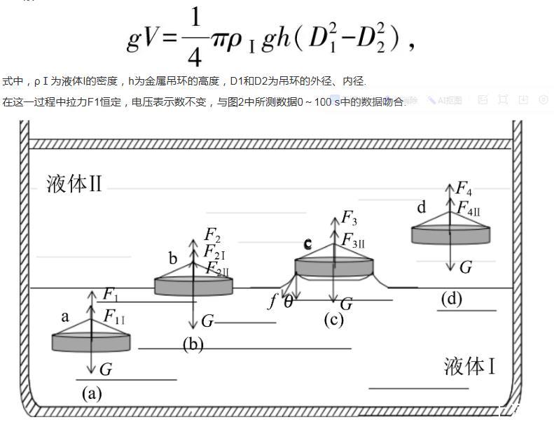 1)金屬吊環(huán)全部浸沒在液體Ⅰ中