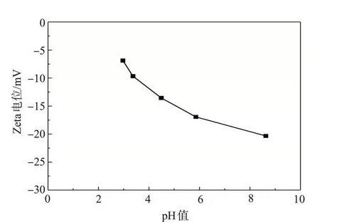 圖3在不同pH值下納米SiO2/SDS體系的Zeta電位