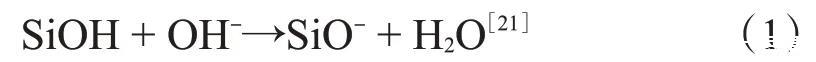 模擬地層水配制的納米SiO2/SDS體系的pH值在8.5左右,此時,納米SiO2表面的羥基會和OH-發(fā)生如下反應: