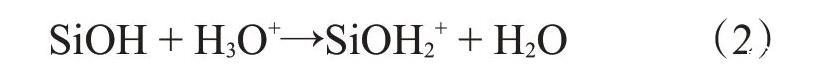 在酸性介質(zhì)中,納米SiO2表面的羥基會和游離的質(zhì)子化水發(fā)生如下反應:
