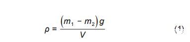 式中,m_1為懸掛于電子天平底部密度探頭的質(zhì)量,g;m_2為密度探頭浸入到待測(cè)液體內(nèi)電子天平的數(shù)值,g;g為重力加速度,取9.81 m/s^2;V為探頭的體積,m^3。