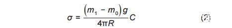 式中,R為拉筒底環(huán)平均半徑,m;m_1為拉筒脫離熔鹽液面時(shí)電子天平的最大讀數(shù),g;m_0為拉筒質(zhì)量,g;g為重力加速度,取9.81 m/s2;C為儀器系數(shù)。