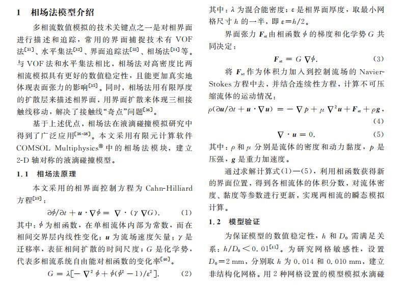 基于上述優(yōu)點(diǎn),相場法在液滴碰撞模擬研究中得到了廣泛應(yīng)用。本文采用有限元計算軟件COMSOL Multiphysics