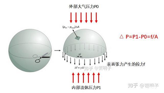 我們很容易就會(huì)看到,由于表面張力的存在,此時(shí)內(nèi)部的壓力肯定要大于外部壓力。那么,這種壓力差的大小是由什么決定的呢?