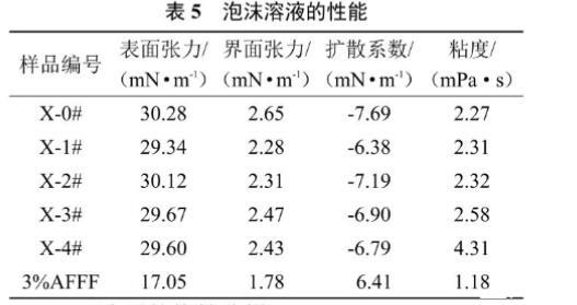 表5泡沫溶液的性能