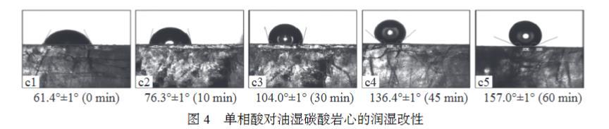 圖4單相酸對(duì)油濕碳酸巖心的潤(rùn)濕改性
