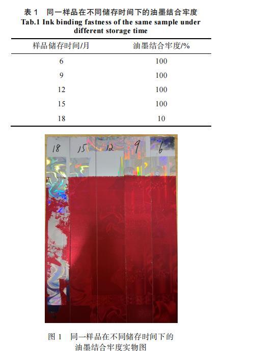 表1同一樣品在不同儲(chǔ)存時(shí)間下的油墨結(jié)合牢度