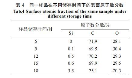表4同一樣品在不同儲(chǔ)存時(shí)間下的表面原子數(shù)分?jǐn)?shù)
