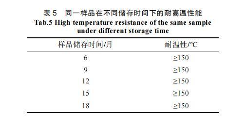 表5同一樣品在不同儲(chǔ)存時(shí)間下的耐高溫性能