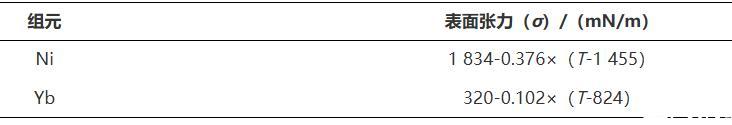 表2純金屬Ni、Yb的標(biāo)準(zhǔn)物理參數(shù)