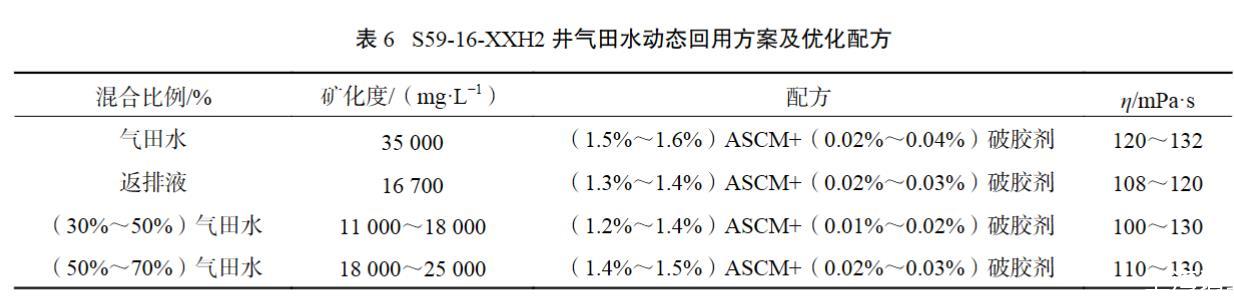 表6 S59-16-XXH2井氣田水動態(tài)回用方案及優(yōu)化配方