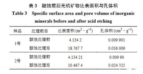 表3酸蝕前后無(wú)機(jī)礦物比表面積與孔體積