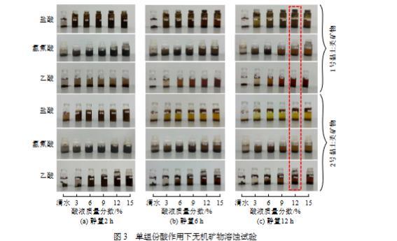 圖3單組份酸作用下無(wú)機(jī)礦物溶蝕試驗(yàn)