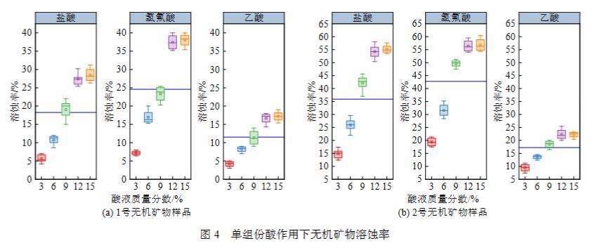 圖4單組份酸作用下無(wú)機(jī)礦物溶蝕率