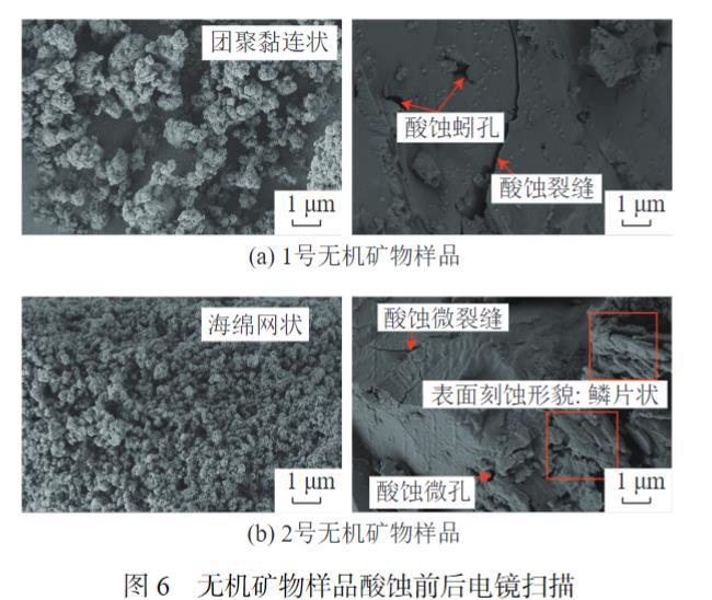 圖6無(wú)機(jī)礦物樣品酸蝕前后電鏡掃描