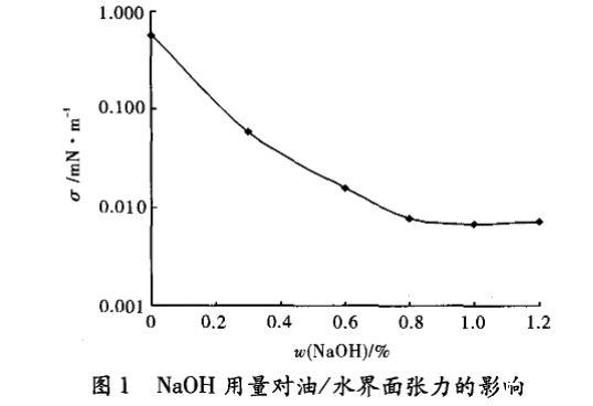 NaOH對無酸油/水界面張力的影響: