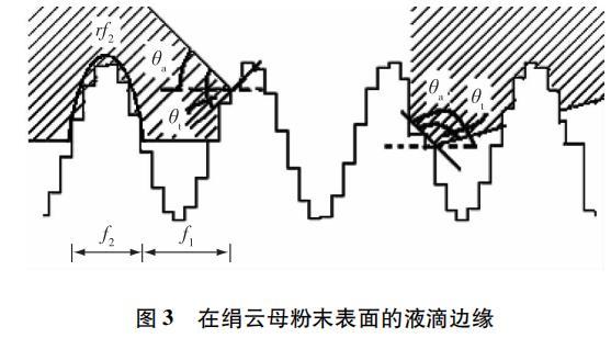 圖 3 液體在粗糙絹云母粉末表面接觸模型