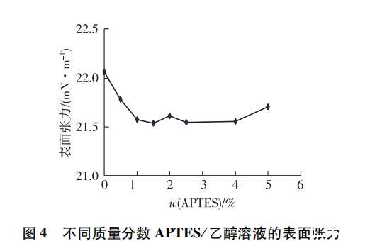 圖 4 乙醇溶液表面張力與APTES含量的關(guān)系