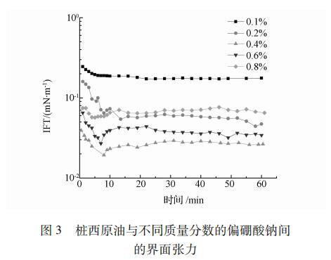 圖3 不同濃度偏硼酸鈉與樁西原油的界面張力