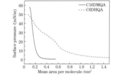 圖1 C6DHQA和C16DMQA的π-A等溫線(25℃)