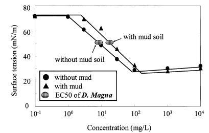 圖13泥質(zhì)土壤存在對(duì)大型水蚤AS表面張力曲線和有毒表面張力值的影響。
