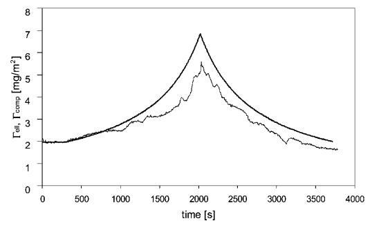 圖8代表性壓縮-吸附b-乳球蛋白(c=0.01 wt%)的膨脹實驗,壓縮低于每個分子的面積。 通過擴(kuò)散量和壓縮量(Gcomp)和橢偏儀(Gell)測量的預(yù)期吸附量。