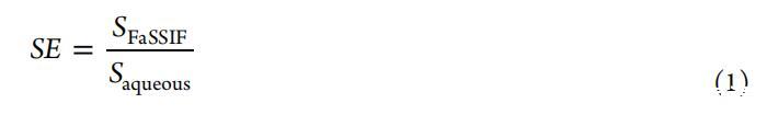 溶解度增強(qiáng)SE計(jì)算為在FaSSIF和水性緩沖液中測得的溶解度比率(等式1):